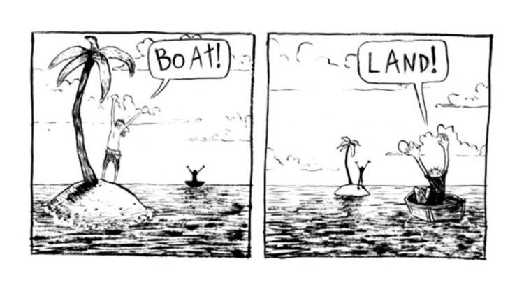 A hapless man sitting in a boat,